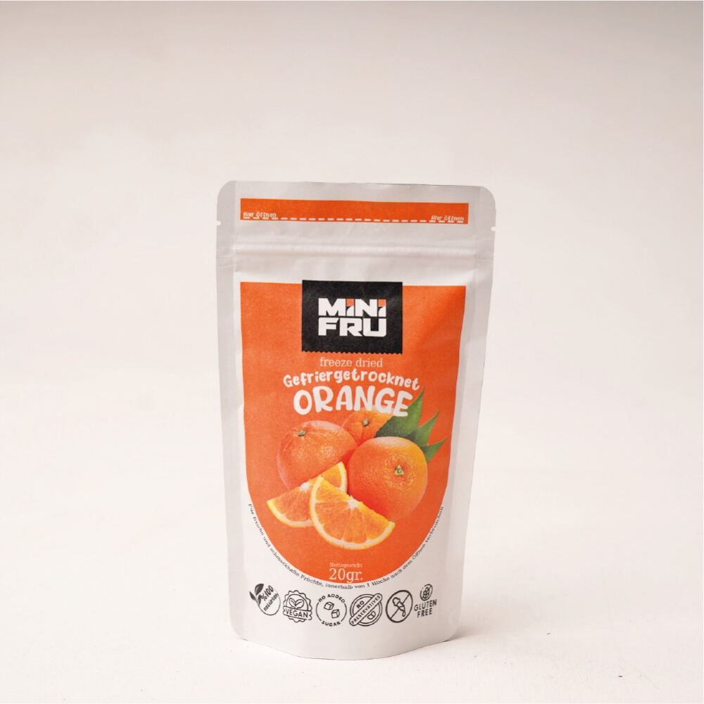 Freeze Dried Oransje Hver Minifru frysetørket frukt pose tilsvarer omtrent 2-3 hekto fersk frukt! 100% frukt