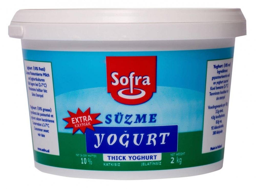 Süzme (thick) yoghurt (10%) 2000 GR Our rich and velvety 'süzme' Turkish yogurt is a dense, full-bodied yogurt boasting a luxurious 10% fat content. 2000 Gr