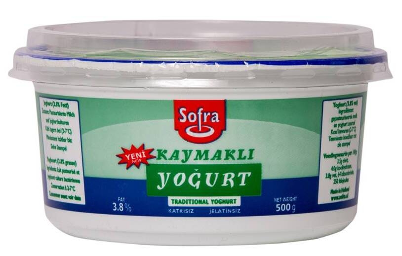 Kaymaklı (traditional) yoghurt (3,8%) 500 GR The traditional 'kaymaklı' Turkish yogurt is a set yogurt containing 3.8% fat.