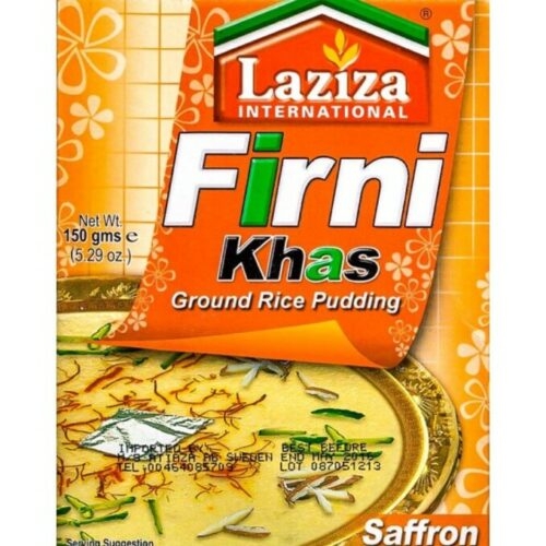 Laziza Firni Khas med safran er en luksuriøs, kremet indisk rispudding med finmalt ris og delikat safranaroma. Den silkemyke konsistensen og den aromatiske, søte smaken gjør den perfekt som dessert til spesielle anledninger eller som en tradisjonell godbit hjemme. Enkel å tilberede og servere kald eller lett avkjølt.