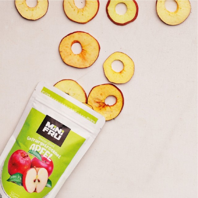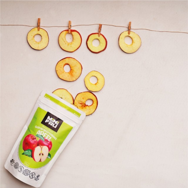 Hver Minifru frysetørket frukt pose tilsvarer omtrent 2-3 hekto fersk frukt!