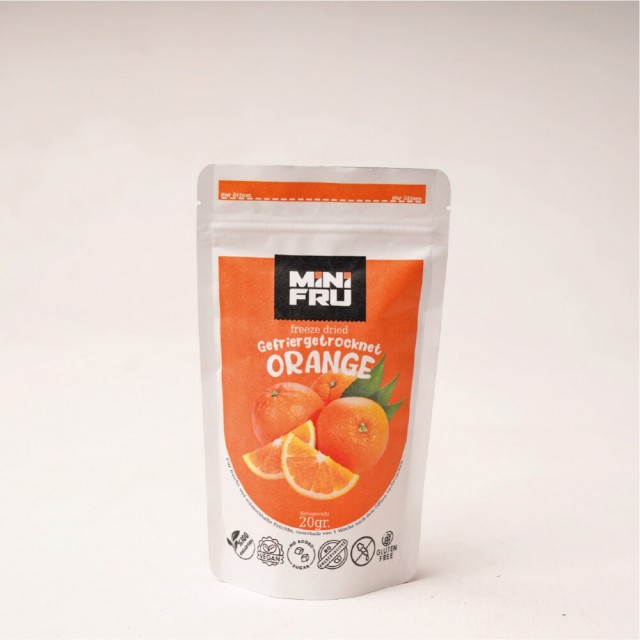 MiniFRU frysetørkede Oransje er et deilig og næringsrikt snacksalternativ laget av ferske, høykvalitets oransje. Enten det nytes alene eller i yoghurt, kefir eller smoothies, gir denne lette og delikate godbiten, rik på fiber, langvarig tilfredshet..