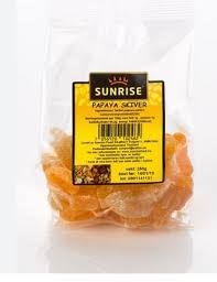 Sunrise Papaya-skiver 195 g – Søte, myke og tropiske fruktskiver Opplev den naturlige sødmen fra tropene med Sunrise Papaya-skiver 195 g. Disse soltørkede papayabitene er perfekte som en sunn og smakfull snack, full av fruktens naturlige smak, farge