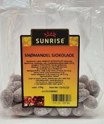 Sunrise Snømandel sjokolade – 195 g Opplev den delikate smaken av Sunrise Snømandel sjokolade – sprø, ristede mandler dekket med kremet melkesjokolade og et tynt lag hvitt pulver som gir en elegant “snøeffekt”. En uimotståelig kombinasjon av sprøtt, søtt