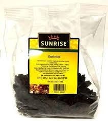 roduktbeskrivelse Sunrise Korinter 195 g er små tørkede druer (korinter), også kjent som “currants”. Produktet er pakket i 195 g pose og brukes ofte som tørket frukt i baking, frokostblandinger, i kaker eller som ingrediens i søte og salte retter.